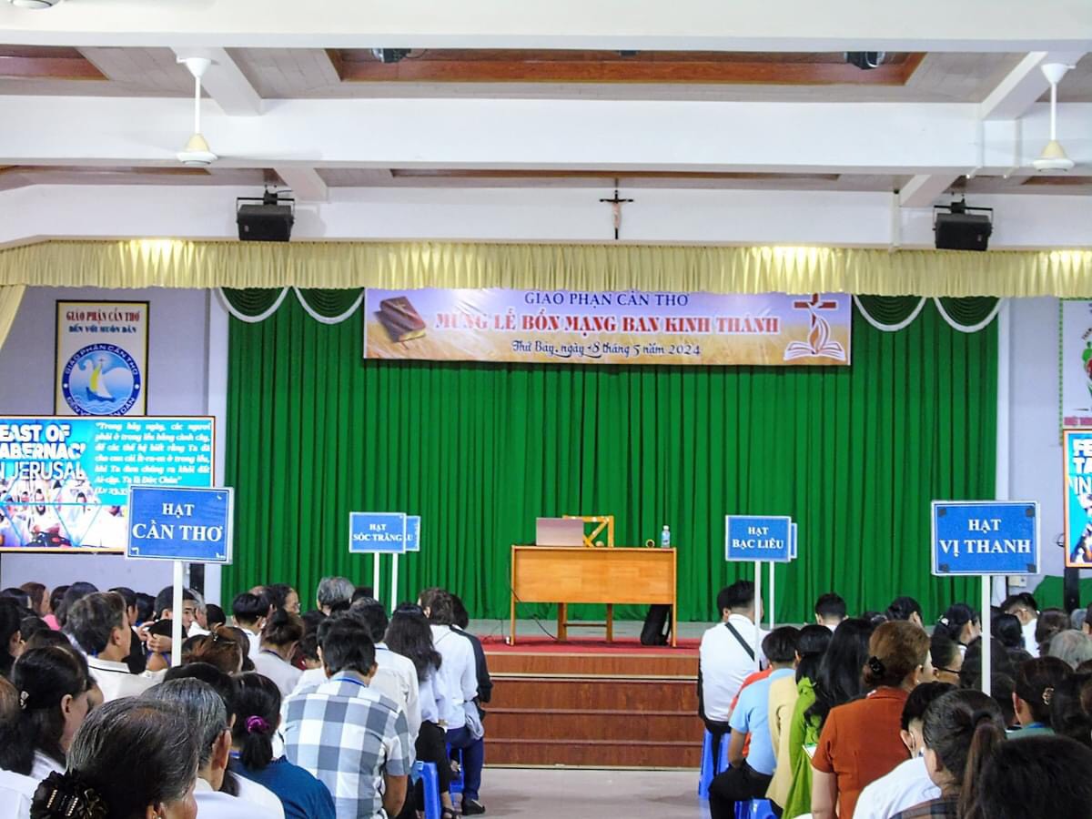 Sáng ngày 18 tháng 5 năm 2024, tại Trung tâm Mục vụ giáo phận Cần Thơ, Đại hội Kinh Thánh chính thức diễn ra trong bầu khí hân hoan và tràn đầy niềm vui. Đại hội năm nay quy tụ khoảng 650 tham dự viên, gồm đông đảo quý Cha, quý Sơ và anh chị em giáo dân từ khắp các Giáo hạt trong toàn Giáo phận tham dự.